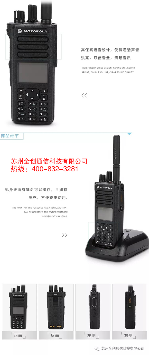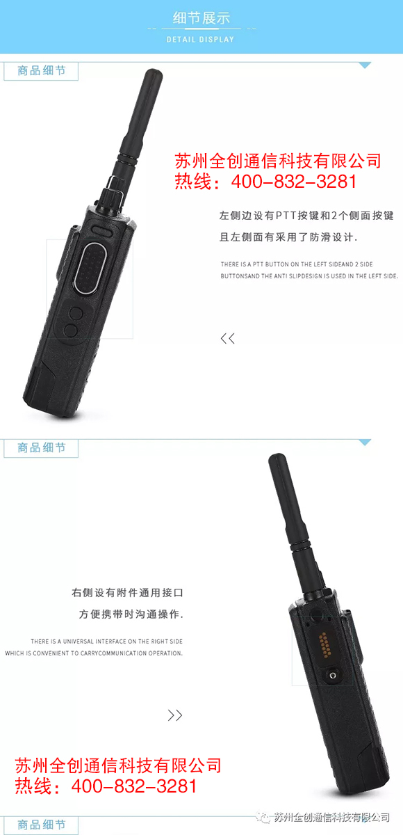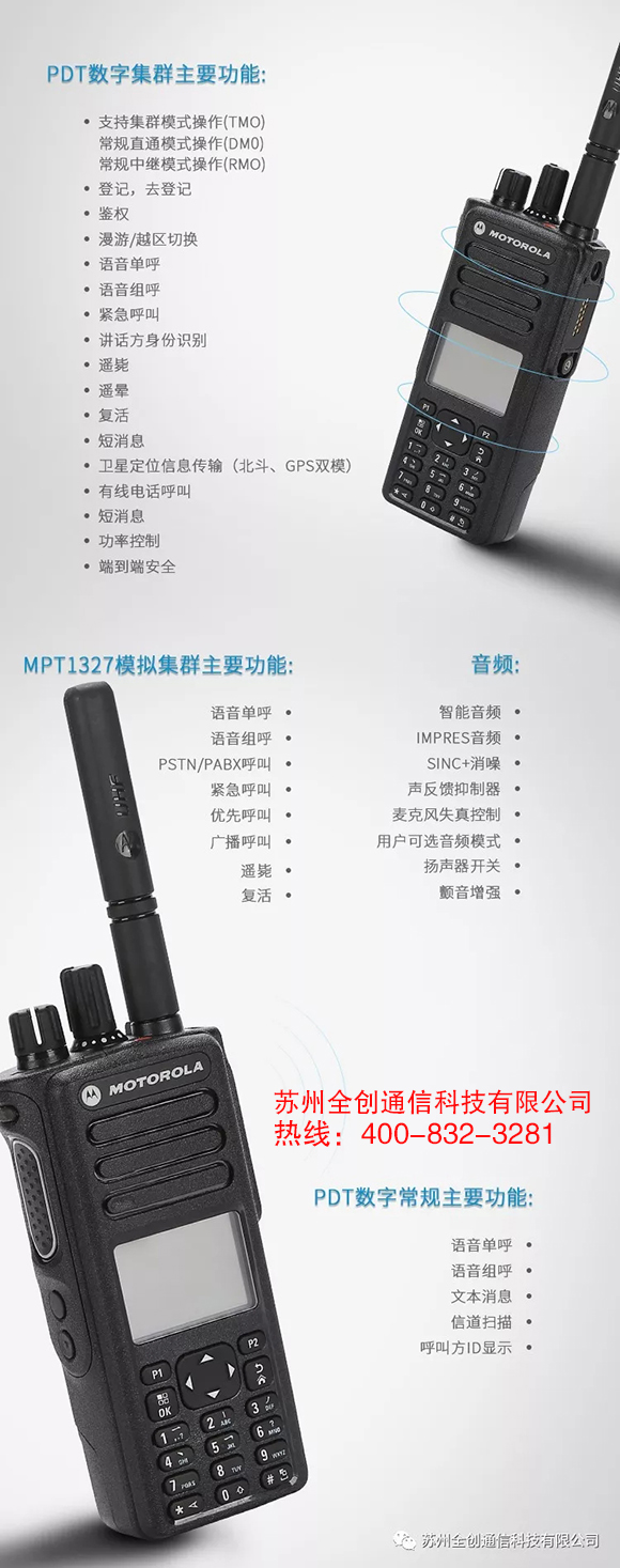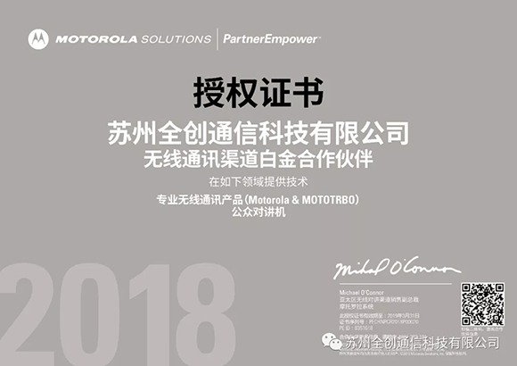 苏州全创通信科技有限公司是一家专业从事通信终端设备销售、无线电通信工程组网、通信应用解决方案的供应商和无线电通信系统集成商,是摩托罗拉、建伍华东地区核心分销商,摩托罗拉白金代理商。公司主营数字对讲机,防爆对讲机,摩托罗拉对讲机,海能达对讲机,建伍对讲机,中继台,车载台等。15年专注对讲机无线通讯,无线电通信应用解决方案定制专家。咨询热线:400-832-3281