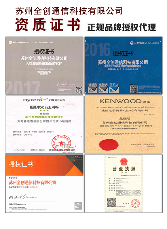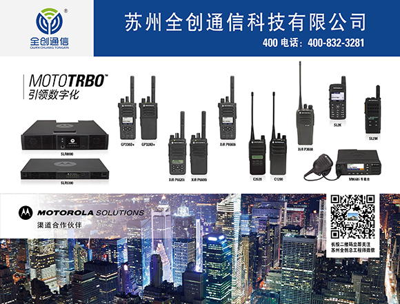 苏州全创通信科技有限公司是一家专业从事通信终端设备销售、无线电通信工程组网、通信应用解决方案的供应商和无线电通信系统集成商,是摩托罗拉、建伍华东地区核心分销商,摩托罗拉白金代理商。公司主营数字对讲机,防爆对讲机,摩托罗拉对讲机,海能达对讲机,建伍对讲机,中继台,车载台等。10年专注对讲机无线通讯,无线电通信应用解决方案定制专家。咨询热线:400-832-3281