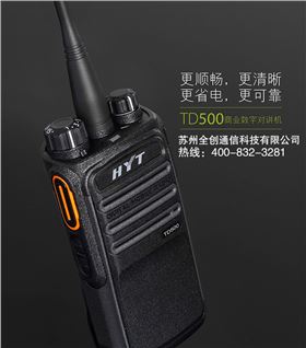 海能达TD500数字对讲机定位于商业用户,是海能达原TC5模拟系列的数字升级版,TC5模拟系列已经销售长达10年以上,拥有超过两百万的庞大用户群体,是海能达当之无愧的模拟机王,其过硬的硬件及通信质量深得用户认可。TD500在传承模拟机王优良性能基础上,特有的数字悦音技术让使用者身处嘈杂的环境中,仍能清晰的通话;双时隙通信支持一个信道2组通话,节省频率资源;结合数字技术TD500使用时长比模拟/FDMA对讲机提升40%,满足商业客户长时间经营的使用需求;数模兼容,保护前期模拟投资,提升客户资源的利用率.